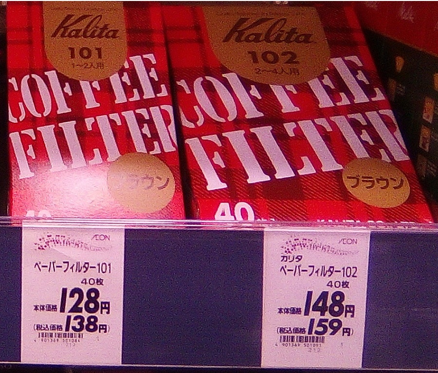 ちなみにカリタのフィルターは40枚入りで128円でイオンで売ってました。カリタのフィルターはお高いのです。だから安いフィルターを試してみたくなったのです。