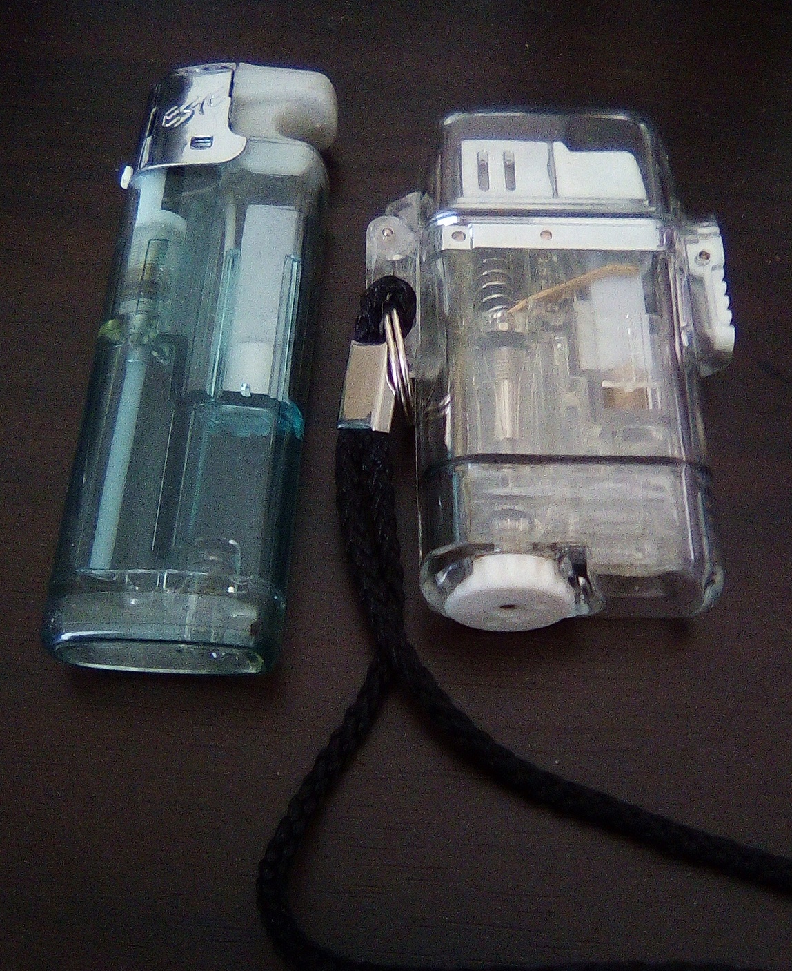 どちらも透明プラスチック製なので、ガスの残量が一目でわかって便利です。ツインライトよりも安いターボライターはほかにもありますが、透明じゃないやつは突然のガス欠が嫌なので、私にとって購入対象外です。
