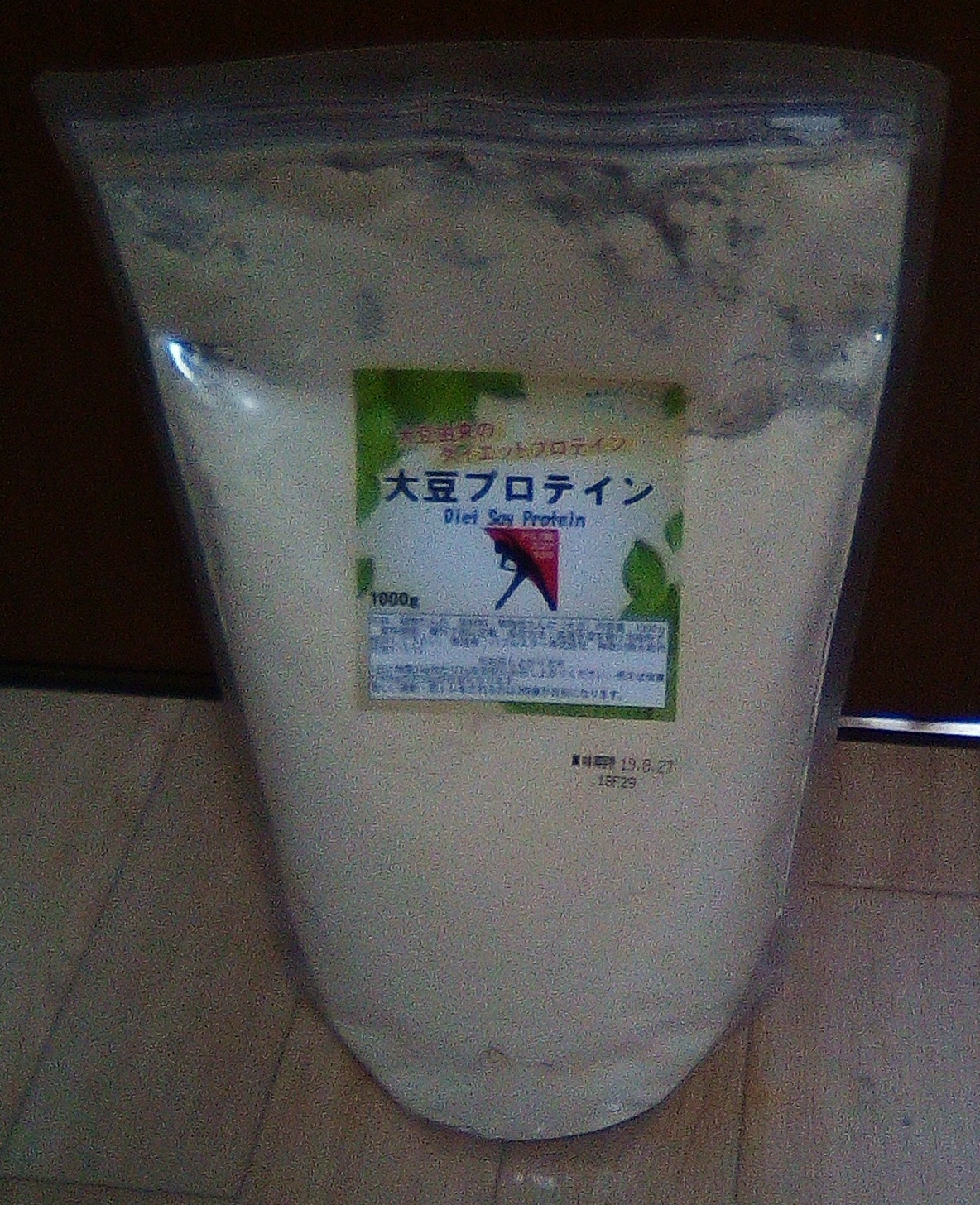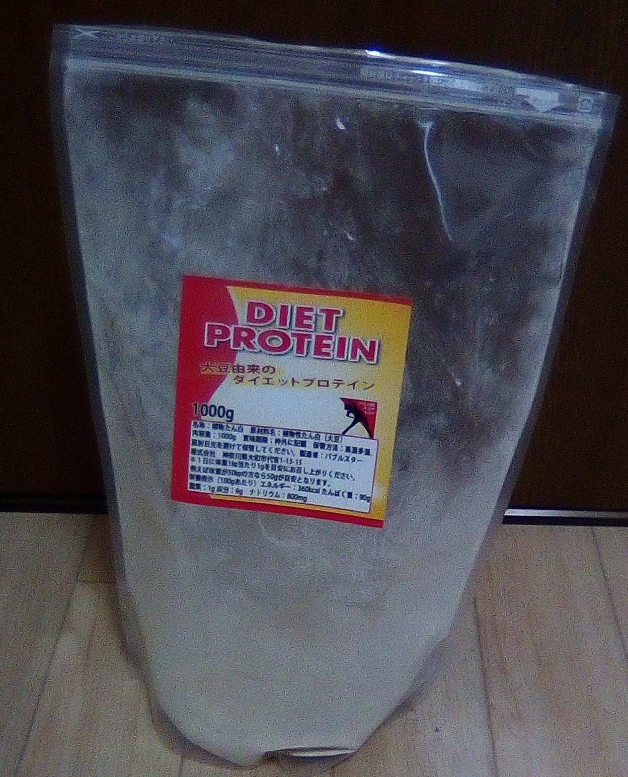 ※この写真は残りわずかになったプロテイン1kgの袋です。
