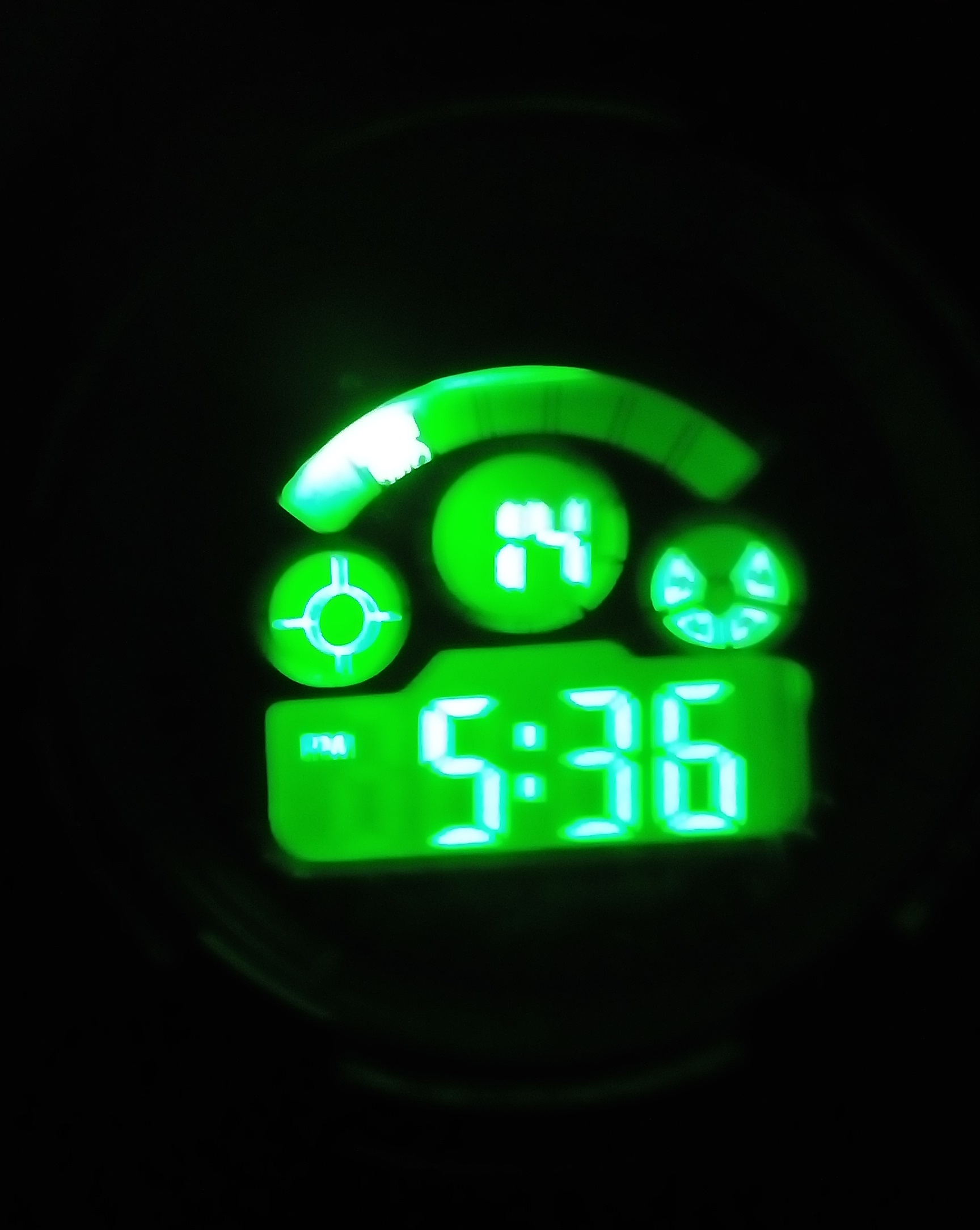私は夜寝るときに腕時計をしたまま寝るので、真っ暗な中のでのバックライトの見易さは重要です。光り方はこの3つの時計のうちHONHXが一番いい感じです。ダイソーの300円のデジタルウォッチも悪くはありません。F-91Wは失格です。