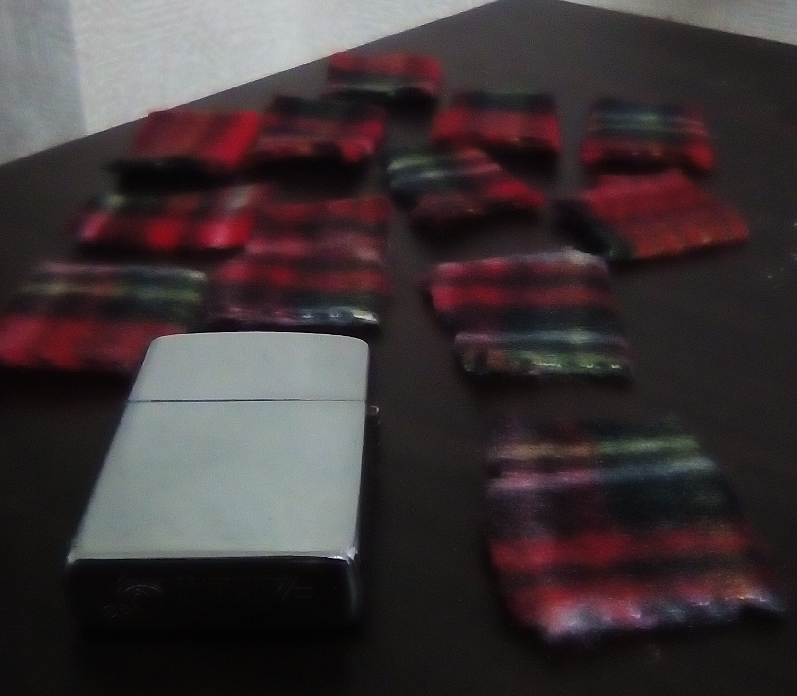 買ったフリースをZippoより少し小さいぐらいの長方形にハサミで切りました。