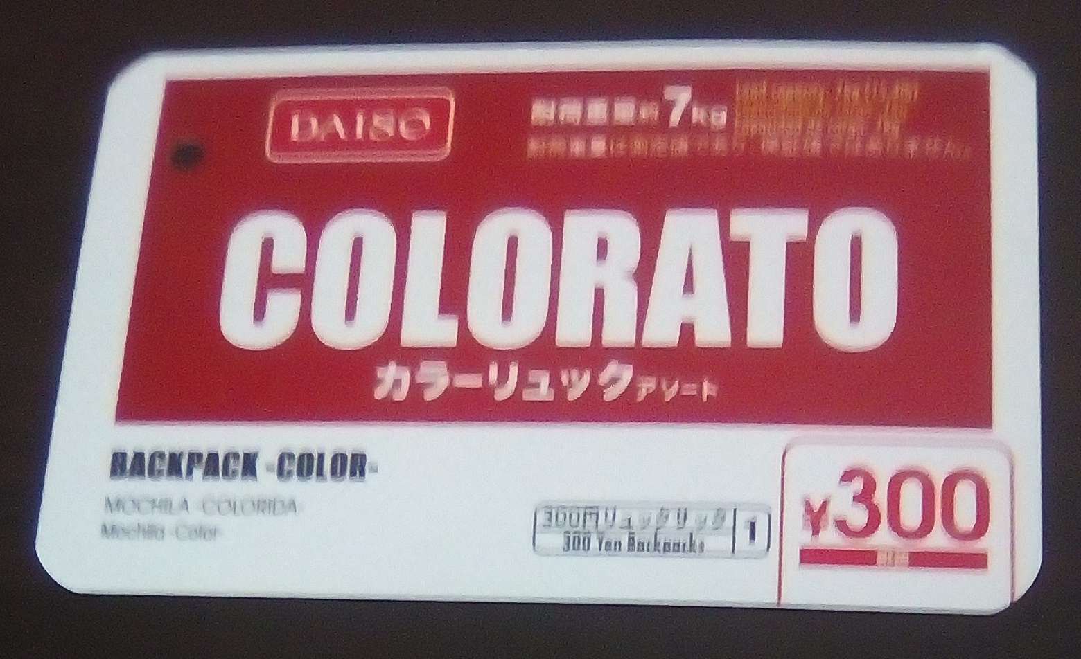 このタグを見た感じだと、製品名は「COLORATO カラーリュック アソート」みたいです。