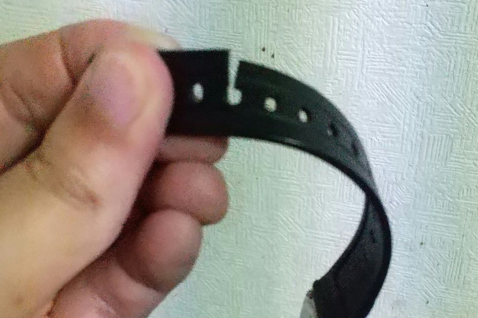 でかいおっさんにはベルトがきつすぎるので、ハンダゴテでベルトに穴を開けました。